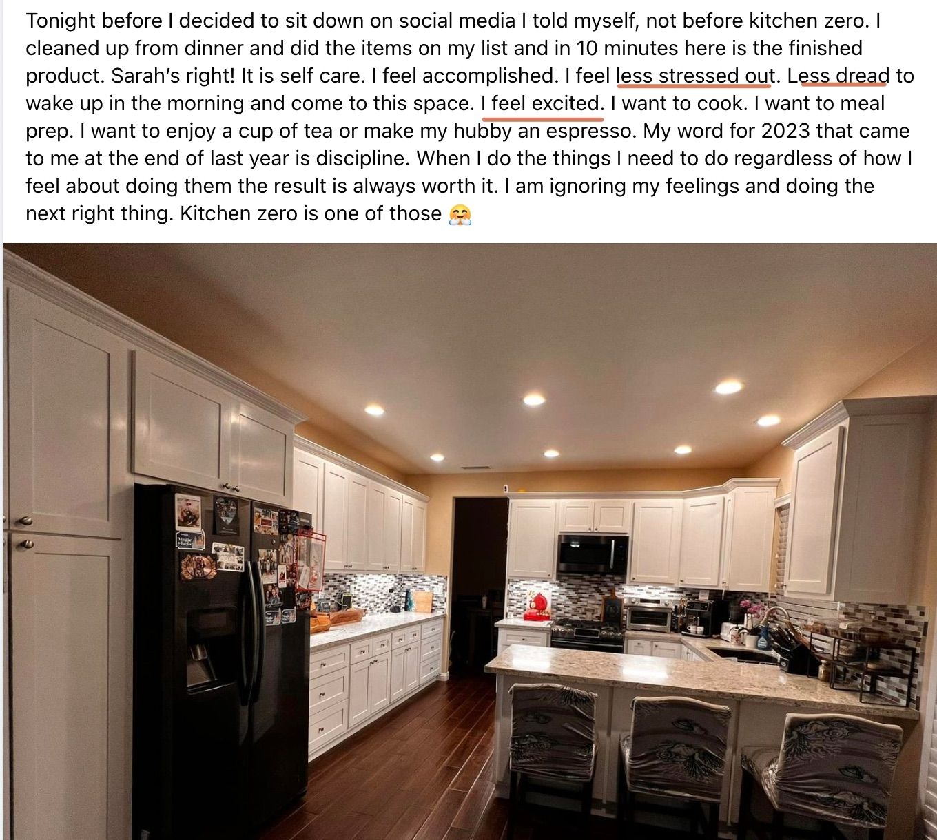 Kitchen Zero is all about showing up for your kitchen every single day, even if it's only for 5 minutes. Over time your work compounds and the kitchen is EASY to clean up even after a big meal or a full day of baking.