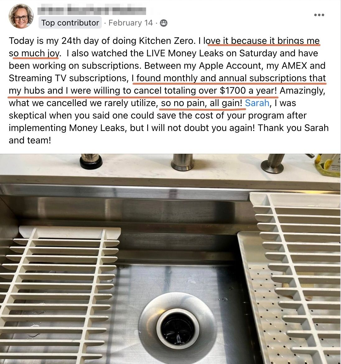 We start all Core members with Kitchen Zero - which is life-changing. It only takes 5 minutes a day.